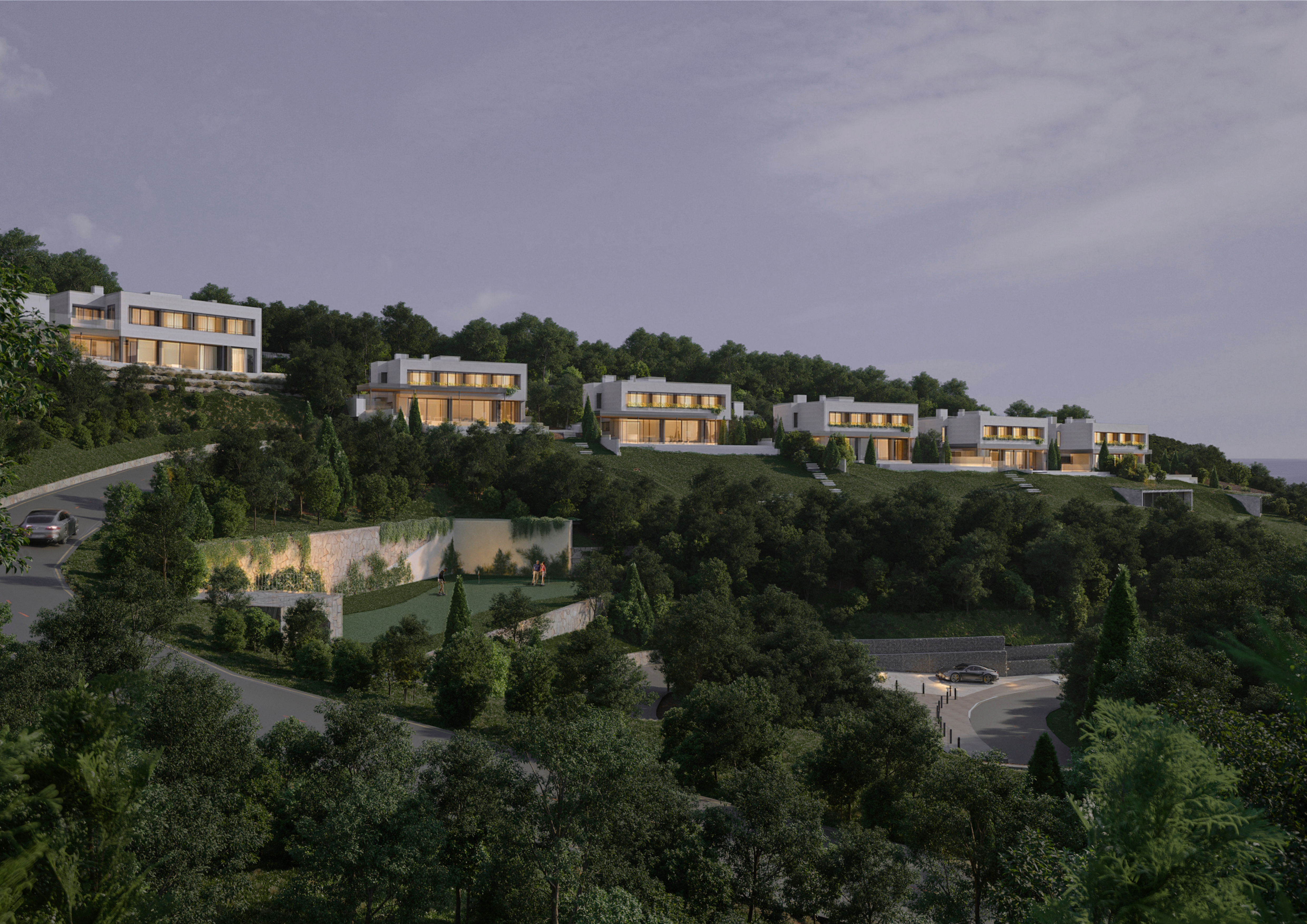 Cada una de los seis inmuebles exclusivos, cuentan con cinco suites, salón comedor, cocina en isla, sala comedor exterior con piscina infinity, sala polivalente y aparcamiento para cuatro vehículos.
